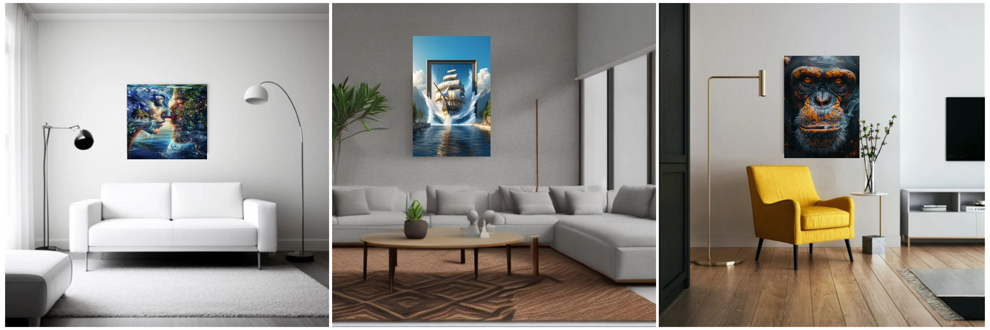 Our digital paintings are a unique combination of technology and creativity. Choose from a wide range of beautiful and original paintings created by the best AI Creators. These works of art are suitable for decorating your home, office or any other interior.