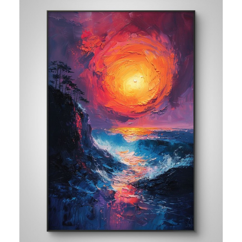 This artwork symbolizes the meeting of opposites: heat and coolness, chaos and balance, ending and beginning. “Burning Horizon” is perfectly suited for modern home interiors, offices, wellness spaces, hotels, and public environments where art should inspire strength, reflection, and emotional depth.