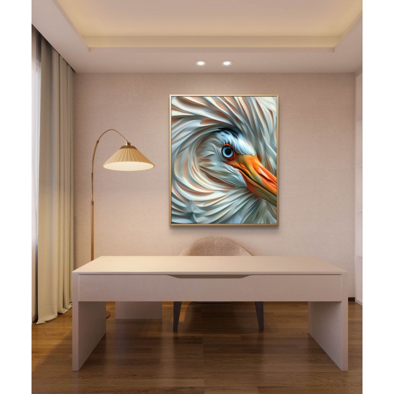 “Whisper of Feathers” is a refined 3D digital artwork capturing an intimate close-up of a bird’s profile, where flowing feathers transform into sculptural waves. The composition emphasizes softness, movement, and quiet strength, creating a sense of calm elegance and silent observation.
