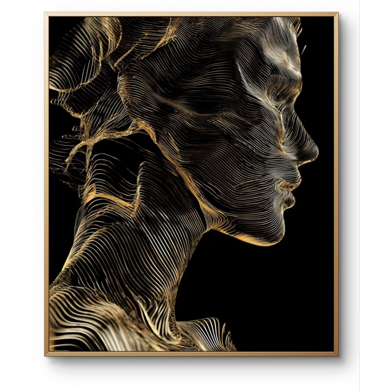 “Golden Frequency” is a refined 3D digital portrait that visualizes the invisible rhythm of human presence. The figure is formed from flowing golden lines, creating the impression of energy, sound waves, or vibrating light. Against a deep black background, the golden contours sculpt the face and body with precision, elegance, and movement.