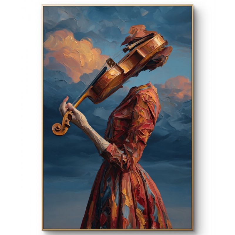 “Inner Melody” is an expressive artwork that blends music, emotion, and visual storytelling. The faceless figure merging with the violin symbolizes a deep connection between the soul and sound.